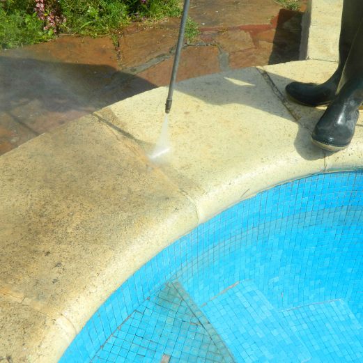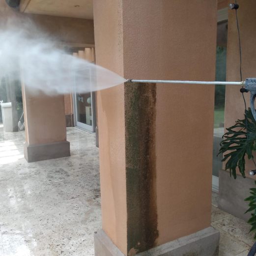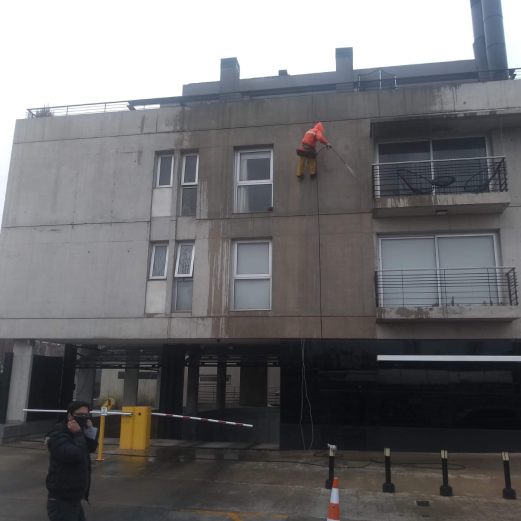 2. Limpieza: Utilizamos agua a presión, fría o caliente según las necesidades del material, para remover toda la suciedad, manchas y contaminantes incrustados. Este proceso deja la superficie como nueva, devolviendo su apariencia original y mejorando su estética general.