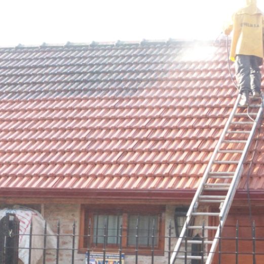 1. Tratamiento Previo: Comenzamos aplicando un producto ecológico especialmente formulado para eliminar el musgo y otras formas de vegetación que se acumulan en las superficies. Este paso crucial no solo limpia en profundidad, sino que también prepara la superficie para un tratamiento más efectivo.